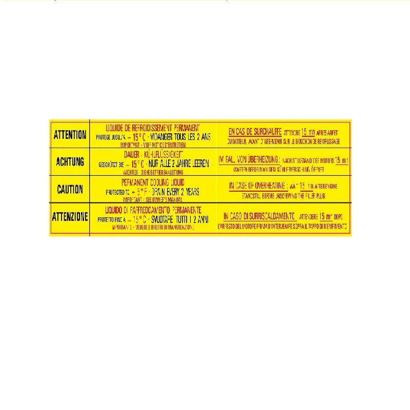 Proteggi il tuo motore con un dettaglio essenziale grazie all'adesivo "Attenzione al Surriscaldamento" per Citroën CX. Questo adesivo è una riproduzione fedele degli avvisi originali presenti sui modelli CX, informando i conducenti sulle precauzioni da adottare in caso di surriscaldamento. Un accessorio fondamentale per i puristi che desiderano mantenere l'autenticità del proprio veicolo e garantirne la sicurezza su strada.