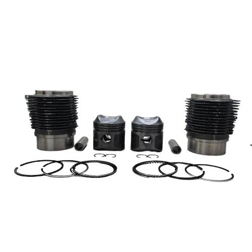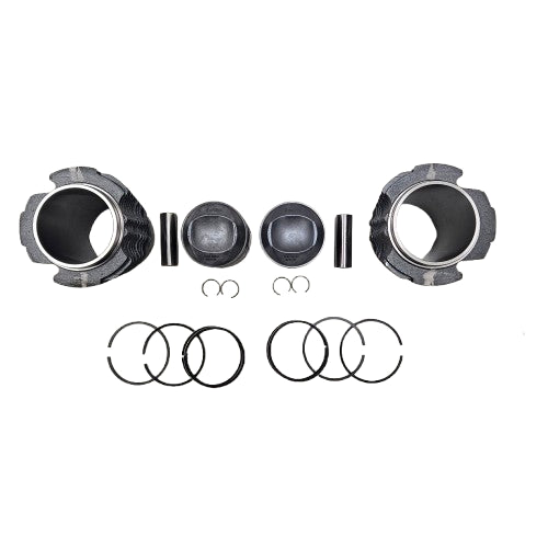 Il kit include due cilindri, due pistoni con spinotti e un set completo di segmenti, tutti realizzati con materiali di alta qualità per assicurare affidabilità e durata nel tempo. Ideale per restauri e potenziamenti, questi componenti offrono una perfetta intercambiabilità con i ricambi originali.